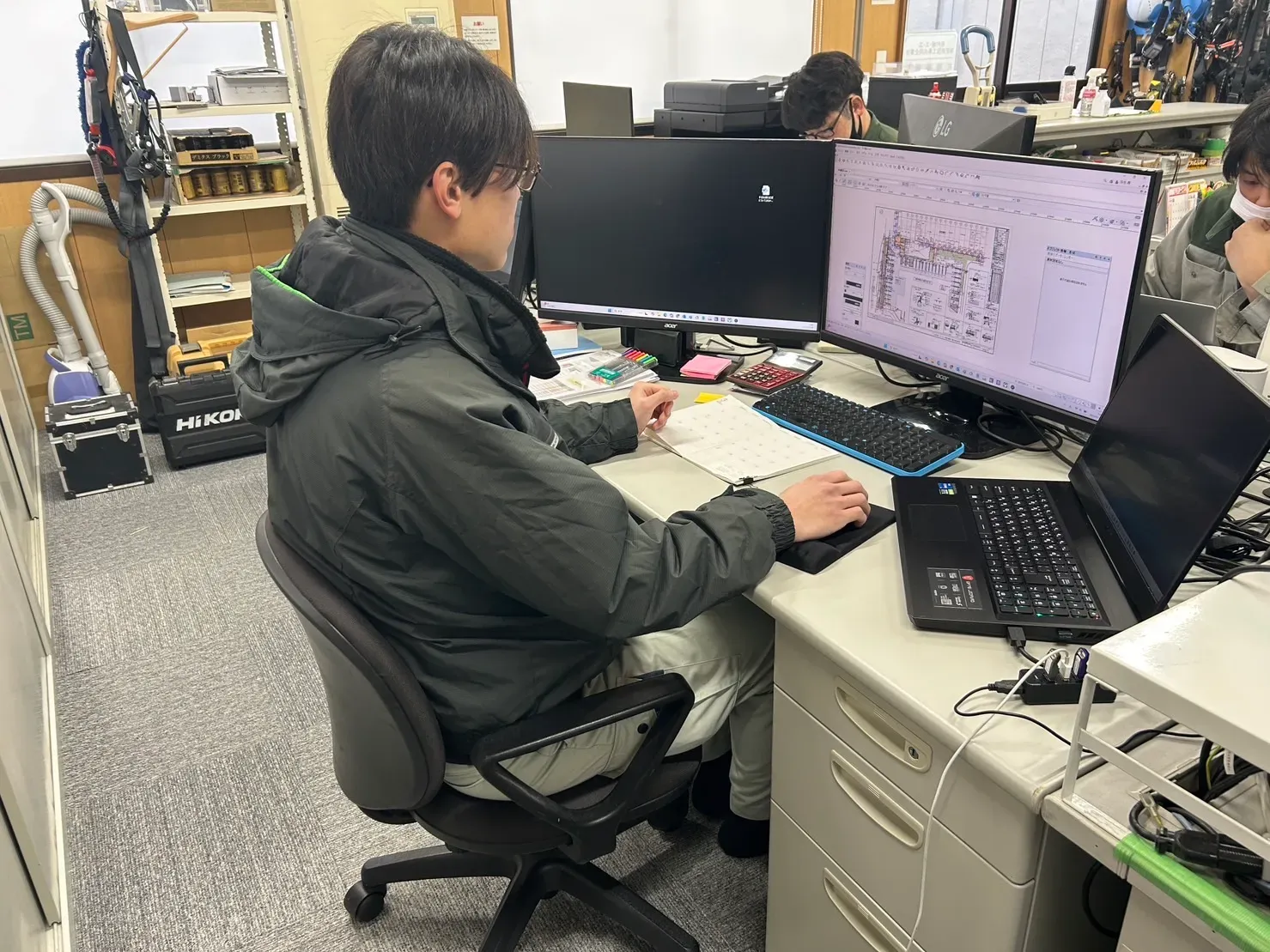 社員同士の距離も近く、誰が何をしているかという情報を社員同士で共有して、工事を進めるスムーズな働き方です。